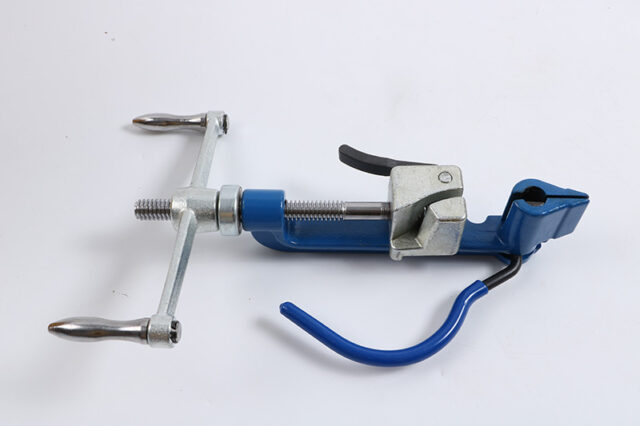 Equipped with a spin handle and retaining ring, the C001 ensures easy, controlled operation while maintaining tool integrity. Its integrated cutter cleanly trims excess strapping after tensioning, providing a neat and professional finish. The drop-forged construction guarantees long-lasting durability, while the spring-loaded gripper lever enhances user comfort during repetitive use.