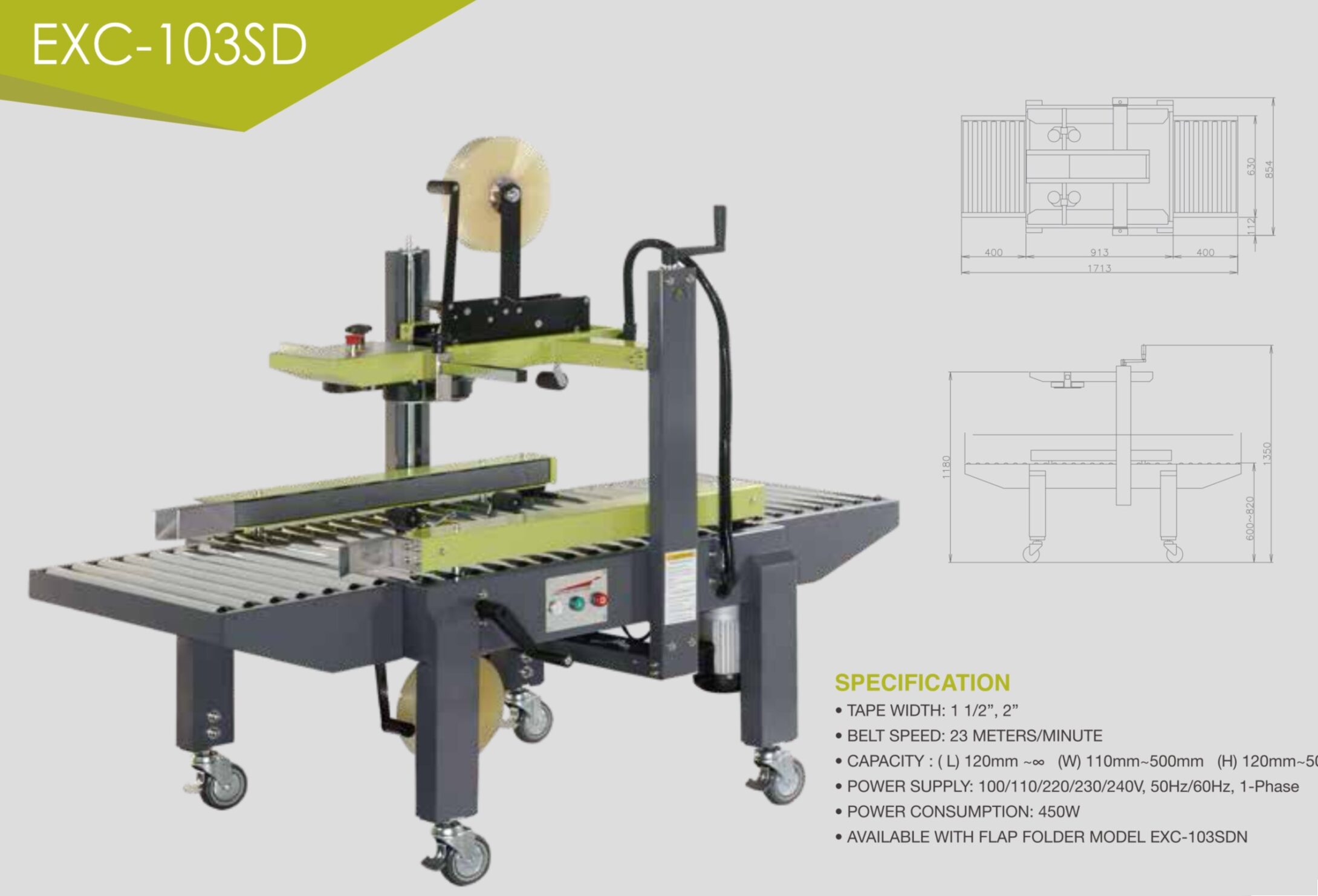 EXC103SD EXTEND SEMI-AUTO CARTON TAPING MACHINE (Side Belt Drive)